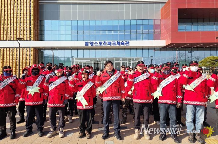 이날 오전 열린 함양 스포츠파크 체육관 준공식에는 주요 내빈과 많은 군민이 참석했으며, 산불전문예방진화대원들이 행사장 주변에서 산불 예방 홍보 활동을 펼치며 겨울철 산불 예방의 중요성을 적극 알렸다.