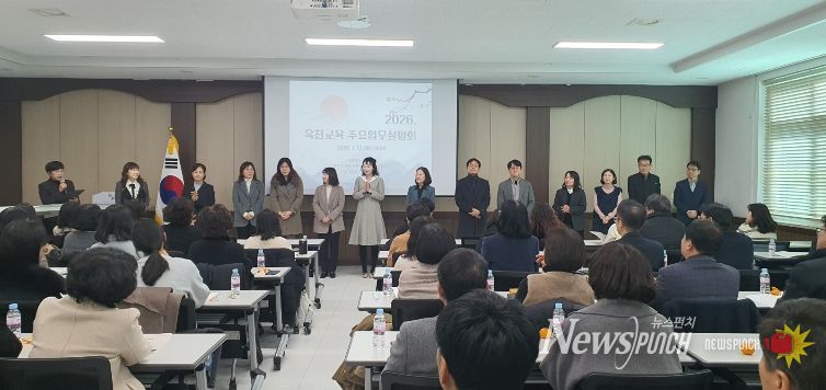 뉴스펀치 이현승 기자 | 옥천교육지원청은 13일 오후 2시, 관내 유ㆍ초ㆍ중ㆍ고 교직원을 대상으로 2026학년도 주요업무 설명회를 개최하고 올해 옥천 교육이 나아갈 이정표를 제시했다.