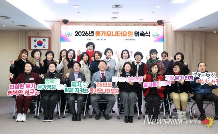뉴스펀치 이현승 기자 | 대전 서구는 13일 구청 장태산실에서 2026년 물가모니터요원 21명을 위촉했으며, 이들이 본격적인 지역 물가 조사 활동을 시작한다고 전했다.