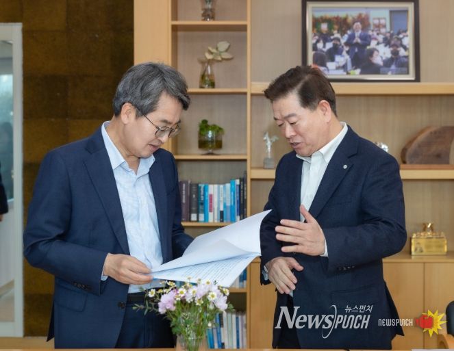 뉴스펀치 박상훈 기자 | 박승원 광명시장이 김동연 경기도지사를 만나 목감교 확장과 광명스피돔 경륜장 인근 개발 등 광명시 주요 현안에 대한 경기도의 지원과 협조를 요청했다.