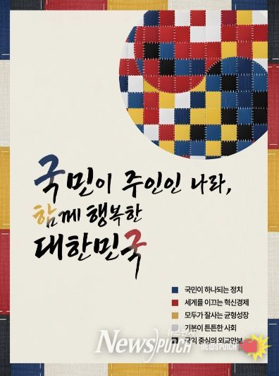 행정안전부는 지난 1월 6일 새로운 국가비전 ‘국민이 주인인 나라, 함께 행복한 대한민국’과 5대 국정목표를 모든 국가기관, 지방정부, 교육기관, 군부대에 게시하도록 안내했다.