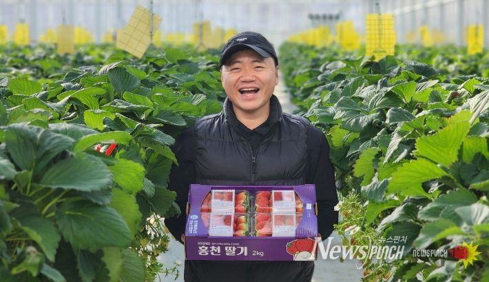뉴스펀치 조평훈 기자 | 홍천군 임대형 스마트팜에서 청년농업인이 정성껏 재배한 싱싱한 딸기가 본격적인 출하를 시작했다.