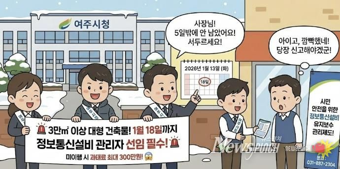 현재 여주시 내 연면적 3만㎡ 이상인 대형 건축물의 관리주체는 오는 2026년 1월 18일까지 정보통신설비 유지보수 관리자를 선임하고 지자체에 신고를 완료해야 합니다.