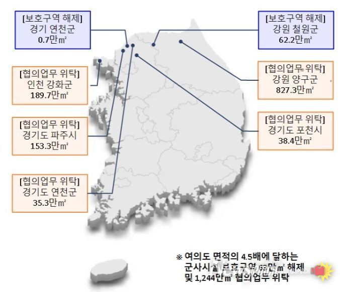 이와 함께, 지역발전 및 주민 불편 해소가 필요한 지역 중 보호구역을 해제하더라도 작전적으로 문제없는 접경지역 3곳을 제한보호구역에서 해제한다.
