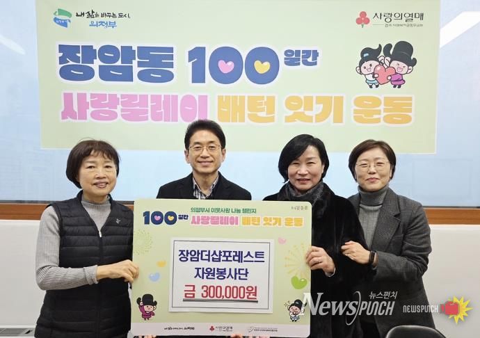 뉴스펀치 박상훈 기자 | 의정부시 장암동주민센터는 1월 13일 장암더샵포레스트 자원봉사단이 지역 내 어려운 이웃을 돕기 위한 성금 30만 원을 기탁했다고 밝혔다.