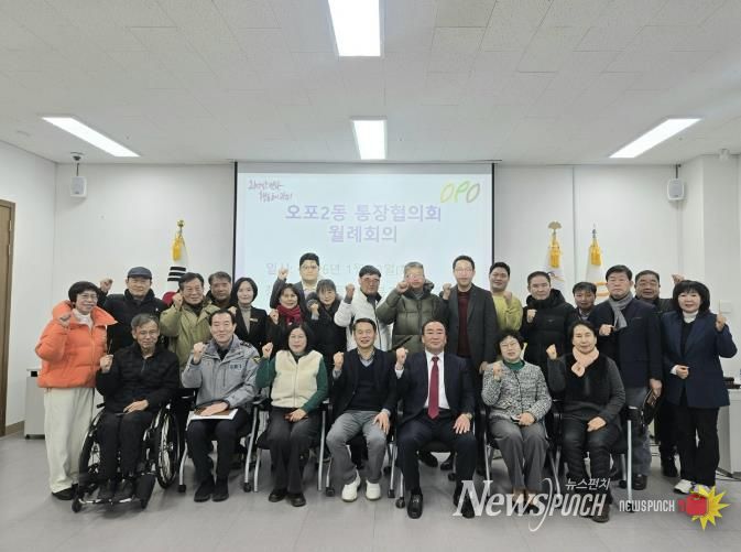 뉴스펀치 박상훈 기자 | 광주시 오포2동은 지난 13일 오포2동 행정복지센터 회의실에서 내빈과 각 마을 통장 30여 명이 참석한 가운데 ‘2026년 1월 중 오포2동 통장협의회 연시 월례회의’를 개최했다.