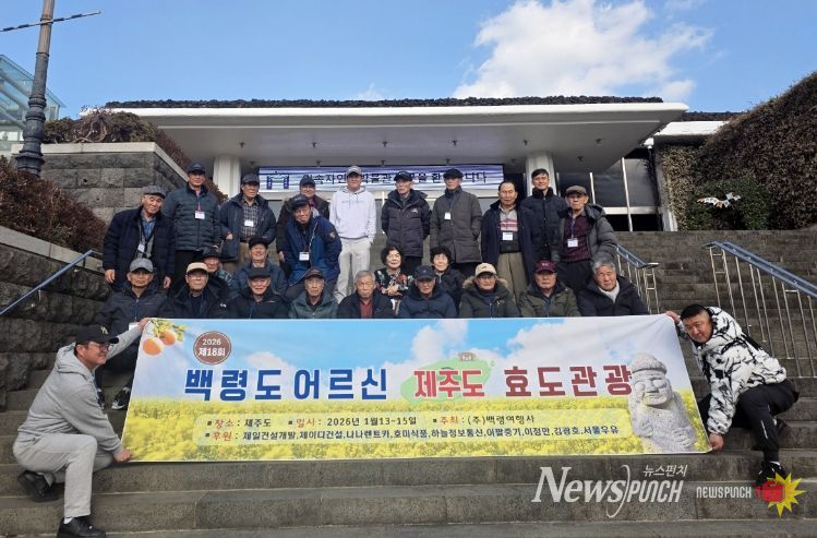 뉴스펀치 정홍균 기자 | 서해 최북단에 위치한 백령도에 살고 계신 어르신 26명이 2026년 1월 13일부터 2박3일 일정으로 제주도 여행을 떠났다.