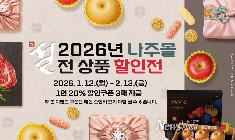 나주시는 2025년 연 매출 16억 원을 달성하며 역대 최고 매출을 기록한 나주몰에서 설 명절을 앞두고 오는 2월 13일까지 ‘2026년 나주몰 설 명절 기획전’을 진행한다고 14일 밝혔다.