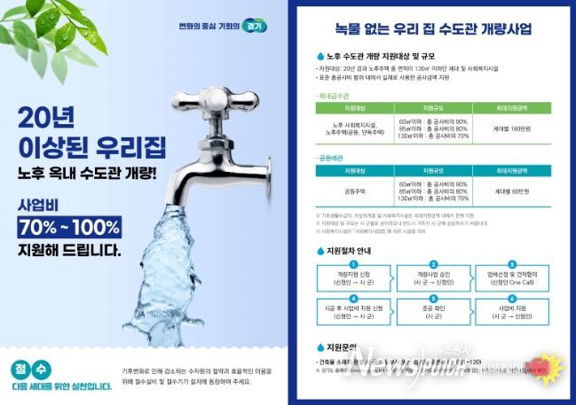 이번 사업은 노후된 옥내급수관을 교체해 녹물 발생을 예방하고, 쾌적한 생활용수 환경을 제공하기 위한 것으로, 준공 후 20년이 지난 130㎡ 이하의 노후주택이 대상이다. 사업을 통해 시민들은 녹물로 인한 불편을 줄이고 보다 안정적인 수돗물을 이용할 수 있게 된다.