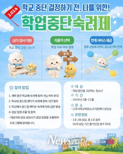 뉴스펀치 박상훈 기자 | 군포시청소년재단 군포시학교밖청소년지원센터는 2025년 학업중단숙려제에 참여한 청소년 19명 중 14명이 학교 복귀를 결정하며, 학업을 지속하기로 했다고 밝혔다.