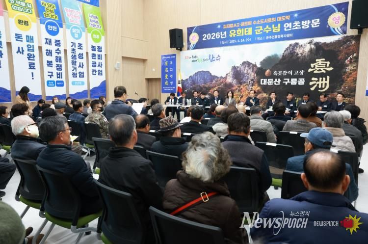 뉴스펀치 정홍균 기자 | 완주군이 14일 운주면과 용진읍을 차례로 방문하며 2026년 군정 운영 방향을 설명하고 지역별 주요 현안에 대한 주민 의견을 청취했다.