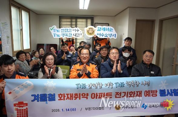 뉴스펀치 최영남 기자 | 여수소방서는 1월 14일, 여수시 여서동에 위치한 부영7차아파트에서 한국전기안전공사 여수지사와 함께 자동소화멀티탭 기증식 및 화재 예방 합동 안전 활동을 실시했다.