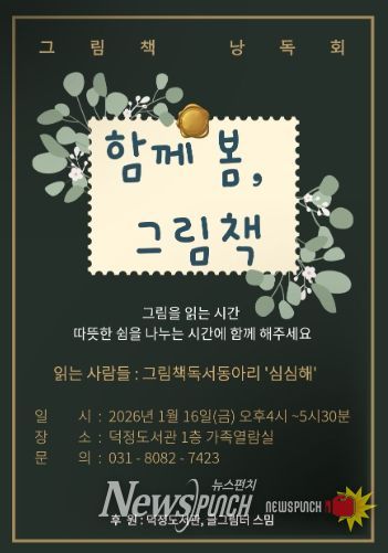 뉴스펀치 박상훈 기자 | 양주시 덕정도서관은 오는 1월 16일 16시부터 17시 30분까지, 도서관 1층 가족열람실에서 그림책 낭독회 '함께 봄, 그림책'을 운영한다.