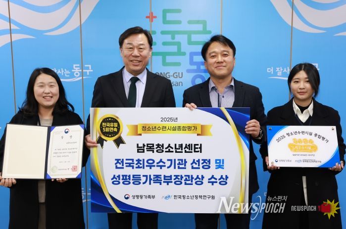뉴스펀치 김윤걸 기자 | 남목청소년센터(센터장 김창열)가 2025년 청소년수련시설 종합 평가에서 전국 최우수기관으로 선정되고, 전국 548개 청소년수련시설 가운데 상위 20개 기관에만 수여되는 성평등가족부장관상을 수상했다.