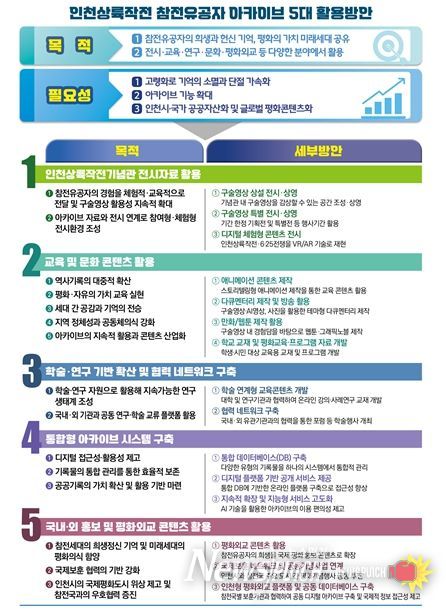 더불어 아카이브 사업의 지속가능성과 확산을 위해 △다년도 사업 전환, △참전·생활사 기록 수집 확대, △‘인천평화안보센터(가칭)’ 설립, △통합형 디지털 플랫폼 구축, △평화·보훈 교육 및 국제협력 활용 등 5대 정책제언도 함께 제시했다.