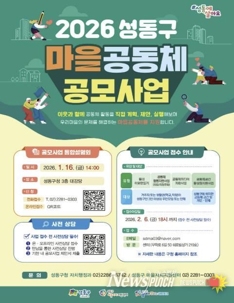 뉴스펀치 박상훈 기자 | 서울 성동구가 이달 12일부터 ‘2026년 성동구 마을공동체 공모사업’ 모집을 시작했다.