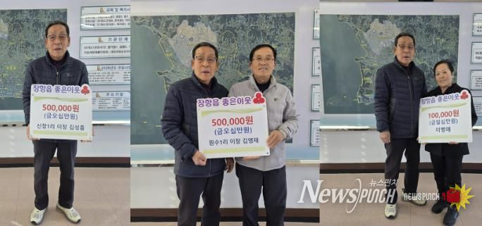 이번 후원에는 김성흠 신창1리 이장이 50만원, 김영재 원수1리 이장이 50만원, 이병애 씨가 10만원을 기부해 총 110만원의 성금이 모였다.