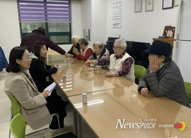 경로당 어르신들은 “직접 경로당을 찾아와 이야기를 들어줘서 고맙다”며 “앞으로도 노인복지 향상과 지역 발전을 위해 지속적인 관심을 가져달라”고 전했다.