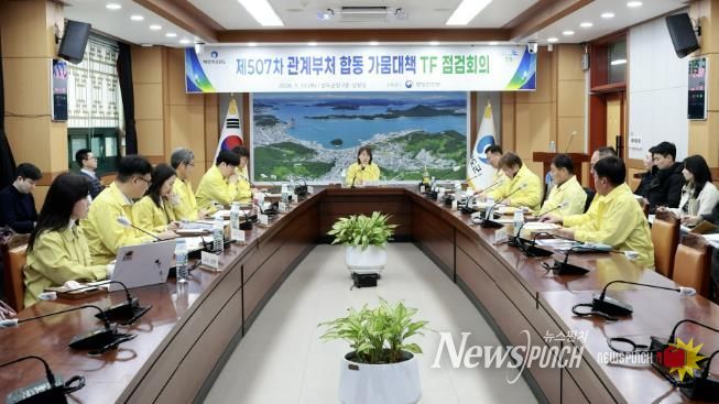 뉴스펀치 김용희 기자 | 완도군은 지난 13일 군청 상황실에서 행정안전부 주재로 '가뭄 대책 TF 회의'와 노화읍 넙도 수원지 현장 점검을 실시했다.