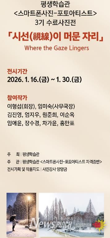 뉴스펀치 박상훈 기자 | 광주시 평생학습관은 ‘스마트폰사진–포토아티스트’ 3기 수강생들의 교육과정을 마무리하며 수료사진전 ‘시선(視線)이 머문 자리’를 개최한다고 15일 밝혔다.