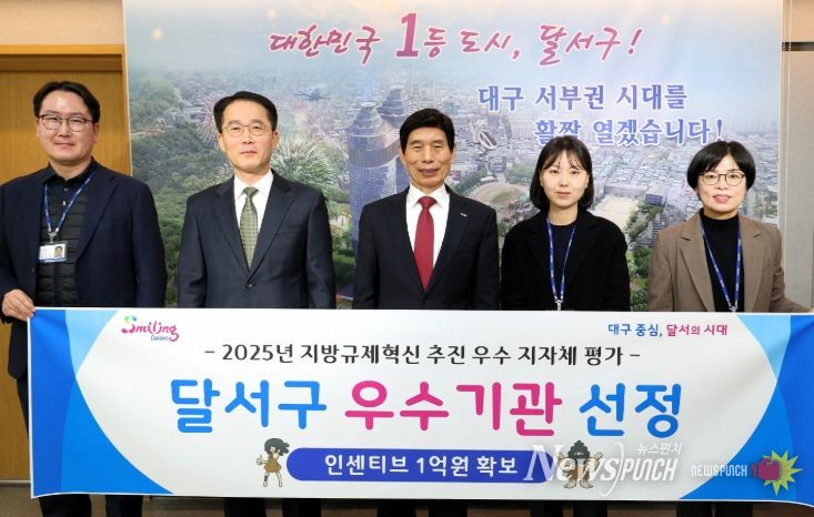 뉴스펀치 조평훈 기자 | 대구 달서구는 행정안전부가 주관한 ‘2025년 지방규제혁신 추진 성과평가’에서 우수 지자체로 선정돼 재정 인센티브인 특별교부세 1억 원을 확보했다고 15일 밝혔다.