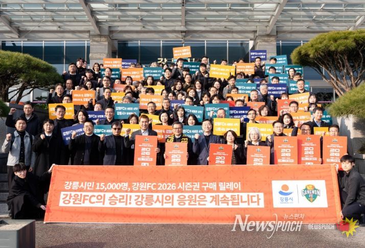 뉴스펀치 조평훈 기자 | 강릉시가 15일 강원FC와 2026시즌(1년) 강릉 홈경기 개최 협약식을 열고, 강원FC 홈경기를 관람할 수 있는 시즌권 단체구매 릴레이에 나섰다.