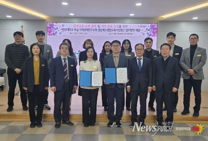 뉴스펀치 박세훈 기자 | 경상북도영천교육지원청은 1월 13일 영남대학교 부설 지역경제연구소와 지역사회 연계를 통한 경제·금융 교육 활성화를 위한 업무협약(MOU)을 체결했다.