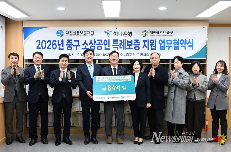 뉴스펀치 이현승 기자 | 대전 중구는 지난 2024년과 2025년에 이어 올해에도 중구 관내 소상공인 경영안정자금 지원을 위해 대전신용보증재단, 하나은행과 협약을 맺고 총 84억 원 규모의 소상공인 특례 보증을 지원한다고 15일 밝혔다.