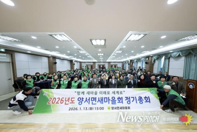 뉴스펀치 박상훈 기자 | 양평군 양서면 새마을회는 지난 13일 국수출장소에서 양서면 새마을지도자, 새마을부녀회장, 기관·단체장 등 80여 명이 참석한 가운데 2026년 새마을회 신년 정기총회를 개최했다.