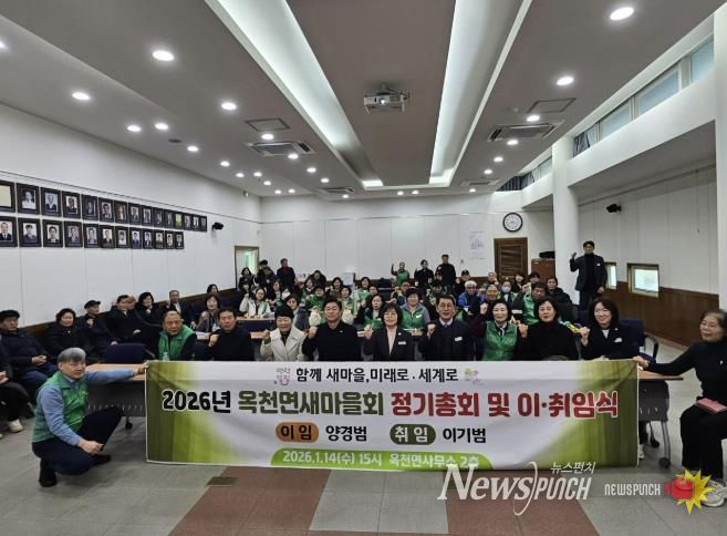 뉴스펀치 박상훈 기자 | 양평군 옥천면 새마을회는 지난 14일 옥천면사무소 회의실에서 새마을지도자와 새마을부녀회 회원, 기관·단체장 등 50여 명이 참석한 가운데 2026년도 새마을회 정기총회 및 이·취임식을 개최했다.
