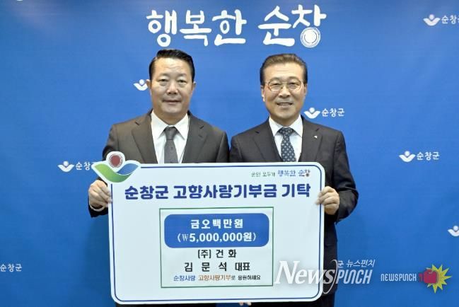 뉴스펀치 정홍균 기자 | 순창군은 15일 ㈜건화 김문석 대표이사가 순창군에 고향사랑기부금 500만원을 기탁했다고 밝혔다.