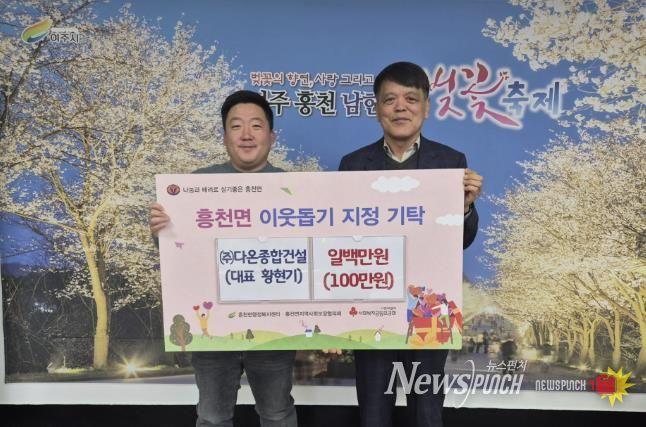 뉴스펀치 박상훈 기자 | (주)다온종합건설은 2026년 1월 14일, 지역사회 나눔 실천의 일환으로 이웃돕기 성금을 흥천면행정복지센터에 기탁했다.