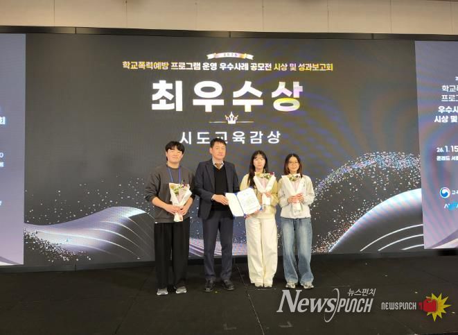 뉴스펀치 이현승 기자 | 충청북도교육청은 15일, 콘래드 서울 호텔에서 열린 한국청소년정책연구원 주관 '2025년 학교폭력 예방 프로그램 운영 우수사례 공모전' 시상식에서 학교 · 교사 · 학생이 출품한 7편이 모두 입상했다고 밝혔다.