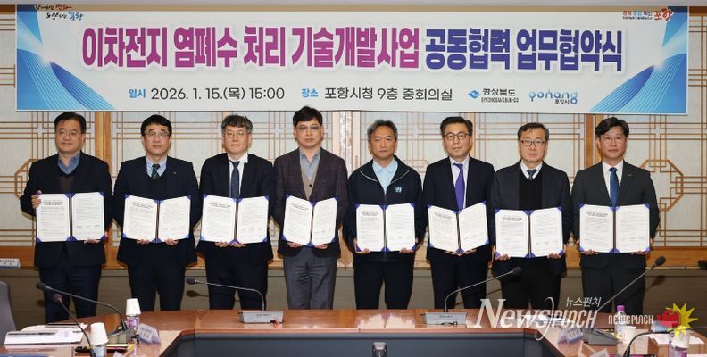 뉴스펀치 박세훈 기자 | 경상북도는 15일 포항시청 중회의실에서 이차전지 산업의 난제로 꼽히는 염폐수 처리 기술개발을 위한 업무협약(MOU)을 체결했다.