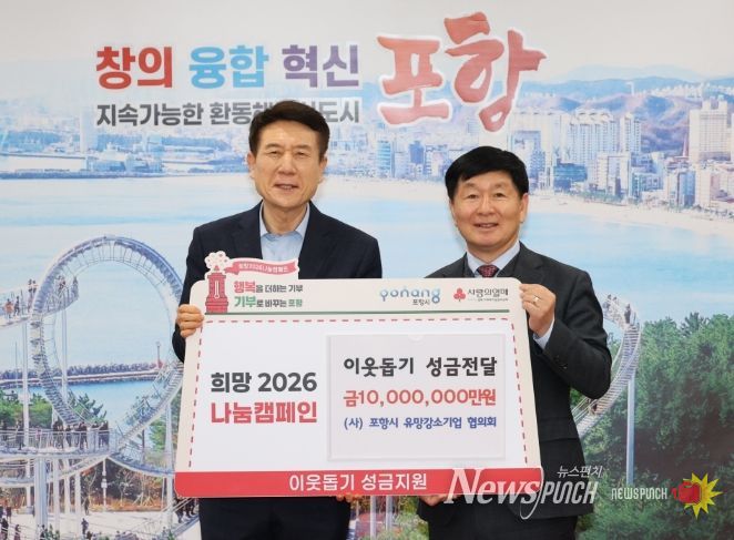 뉴스펀치 박세훈 기자 | 포항시는 15일 (사)포항시유망강소기업협의회가 ‘희망 2026 나눔 캠페인’에 동참하기 위해 1천만 원의 성금을 기탁했다고 밝혔다.