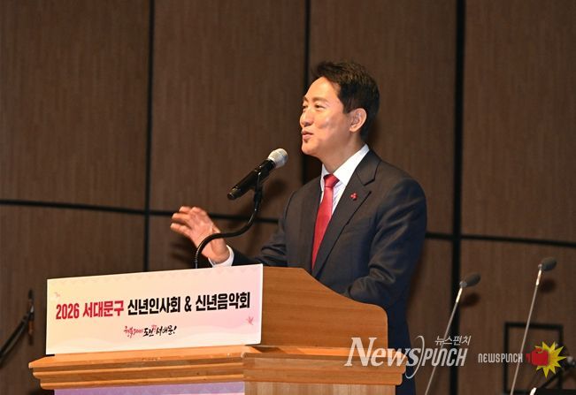 뉴스펀치 박상훈 기자 | 오세훈 서울시장이 15일 오후 3시 연세대학교 대강당(서대문구 연세로 50)에서 열린 ‘2026년 서대문구 신년인사회’에 참석해 주민들과 새해 인사를 나누고, 올해 시정 운영 방향을 전달했다.