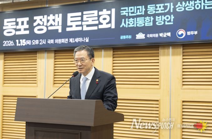 뉴스펀치 정홍균 기자 | 법무부는 2026년 1월 15일(목) 오후 2시, 국회의원회관 제1세미나실에서 국회의원 박균택 의원실과 공동으로 '국민과 동포가 상생하는 사회통합'정책 토론회를 개최했다.