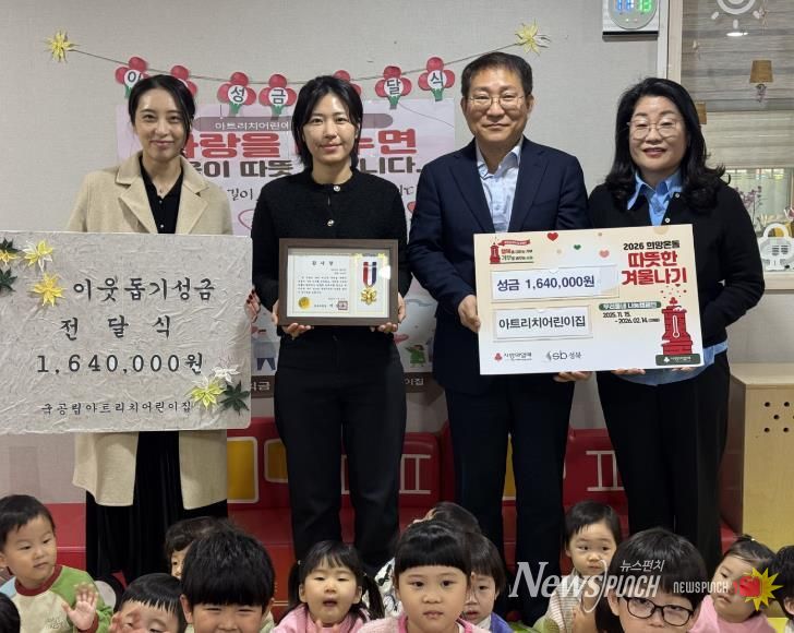 뉴스펀치 박상훈 기자 | 아트리치 어린이집은 지난 14일 저소득층을 지원하는 '2026 희망온돌 따뜻한 겨울나기' 사업에 성금 164만원을 석관동주민센터에 기부하며, 지역사회 나눔을 실천했다.