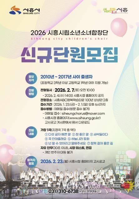 뉴스펀치 박상훈 기자 | 시흥시는 시흥의 문화사절단으로서 아름다운 화음을 함께 만들어 갈 ‘2026년도 시흥시립소년소녀합창단’의 신규단원을 공개 모집한다.