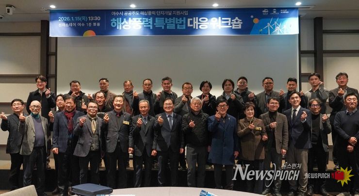 뉴스펀치 김용희 기자 | 여수시가 지난 15일 신라스테이 여수에서 해상풍력 특별법 대응 워크숍을 개최했다.