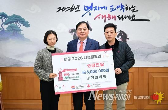 뉴스펀치 박세훈 기자 | 김천시는 지난 15일, ㈜예원테크(대표 정재욱)로부터 희망2026나눔캠페인 성금 500만 원을 전달받았다고 밝혔다.