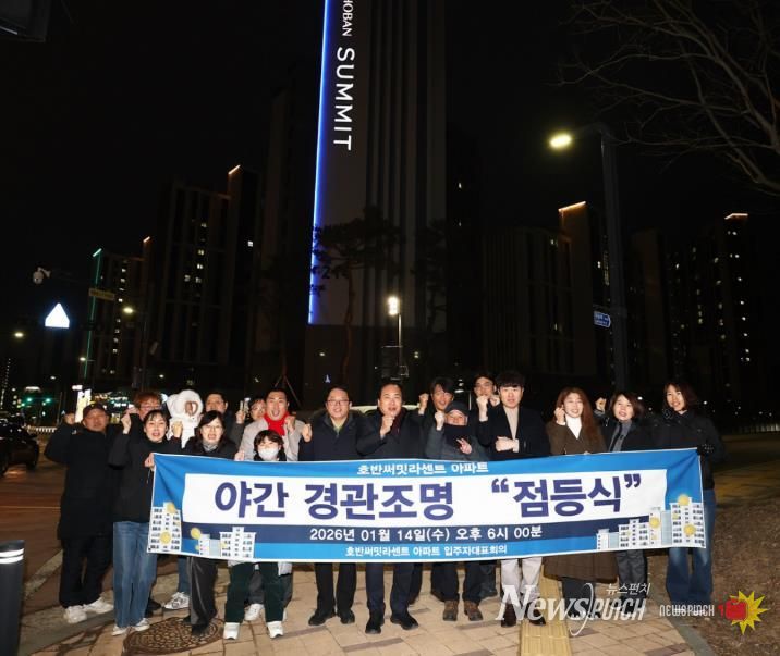 이번 점등식은 기존 옥탑부 조명을 보완해 새롭게 설치한 ‘라인 경관조명’의 본격적인 가동을 알리는 행사로, 아파트 외벽을 따라 조성된 경관조명이 점등되며 단지 전반의 야간 경관이 한층 밝고 쾌적하게 개선됐다.