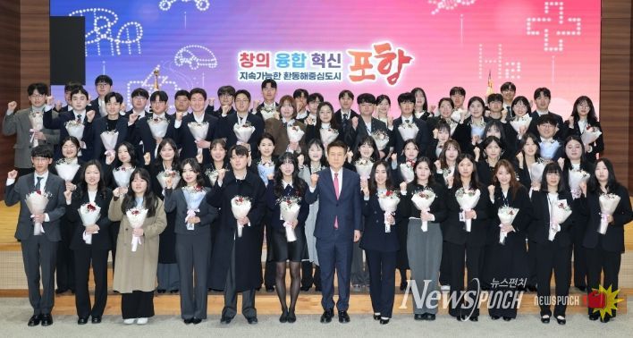 뉴스펀치 박세훈 기자 | 포항시는 16일 시청 대회의실에서 공직 생활의 첫걸음을 시작한 신규 공무원 56명을 대상으로 임용식을 개최했다.