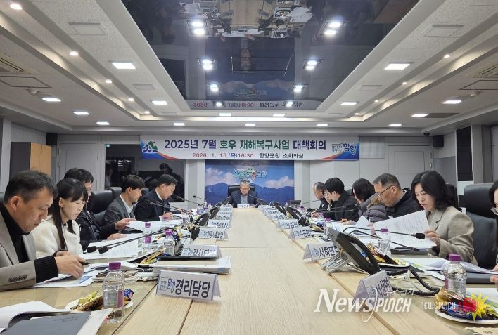 뉴스펀치 박세훈 기자 | 함양군은 1월 15일 양상호 부군수 주재로 관계 공무원이 참석한 가운데, 2025년 7월 호우 재해복구사업의 신속한 추진을 위한 대책 회의를 개최했다.
