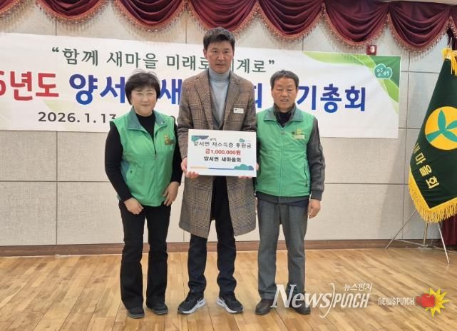 남평우·이윤숙 양서면 새마을회장은 “회원 한 사람 한 사람의 손길이 모여 마련한 성금인 만큼, 이웃들에게 희망과 위로가 되길 바란다”며 “앞으로도 지역과 함께하는 나눔 활동을 이어 나가겠다”고 말했다.