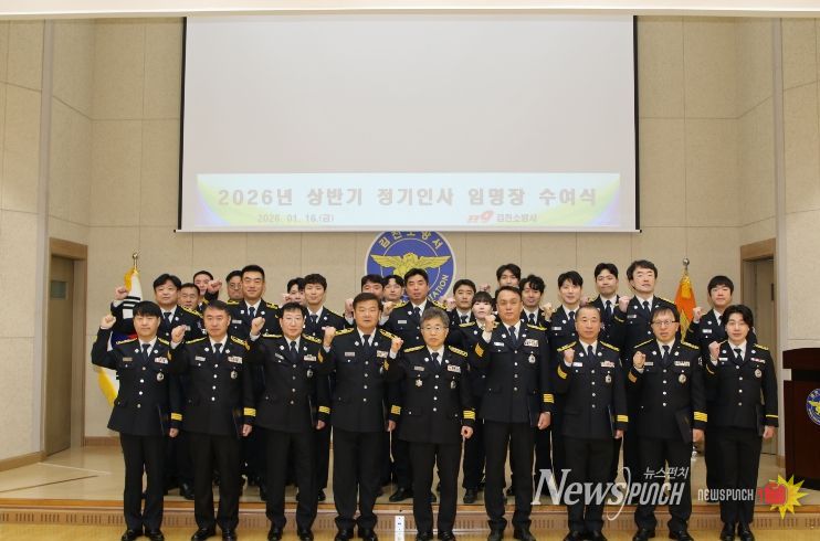 뉴스펀치 박세훈 기자 | 김천소방서(서장 송영환)는 1월 16일 오전 본서 2층 대회의실에서 2026년 1월 정기인사에 따른 임용식을 개최했다.