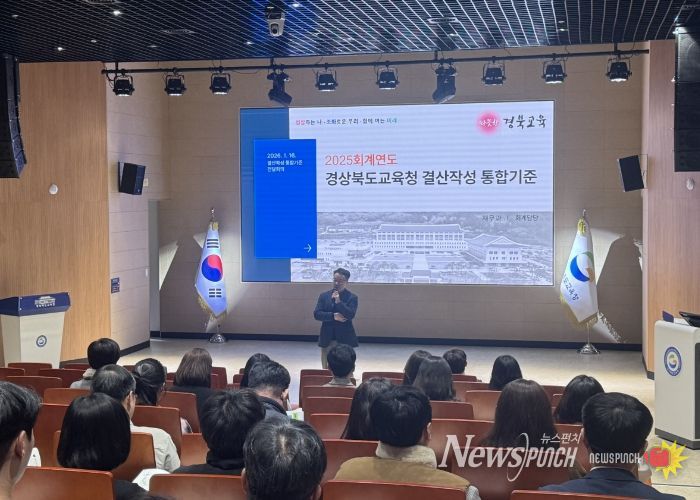 뉴스펀치 박세훈 기자 | 경북교육청은 16일 본청 연화관에서 본청, 직속기관, 교육지원청 등 50개 기관(부서) 결산업무 담당자 80여 명을 대상으로 ‘2025회계연도 경상북도교육청 결산 작성 통합 기준 전달 회의’를 개최했다.