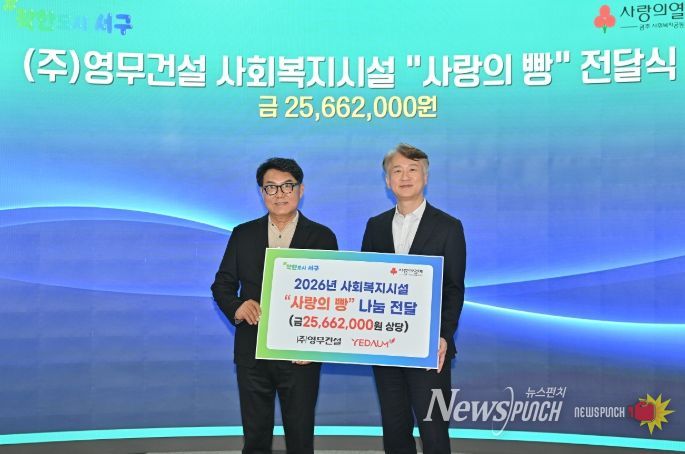 김이강 서구청장은 “정기적인 후원을 통해 따뜻한 나눔을 실천해 주신 ㈜영무건설에 깊이 감사드린다”며 “민관이 함께하는 이러한 나눔이 지역 복지안전망을 더욱 촘촘하고 단단하게 만드는 큰 힘이 될 것이다”고 전했다.