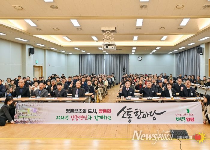 뉴스펀치 박상훈 기자 | 양평군은 16일 ‘2026년 군민과 함께하는 소통한마당’의 아홉 번째 일정으로, 양평군에서 가장 넓은 면적을 자랑하며 군의 극동에 위치한 ‘명품 부추의 도시’ 양동면을 방문해 면민들과 소통의 시간을 가졌다.