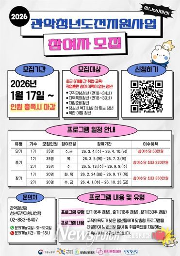 뉴스펀치 박상훈 기자 | 관악구가 구직을 단념한 청년들의 사회 진입을 돕기 위해 오는 1월 17일부터 ‘2026년 청년도전지원사업’ 참여자를 모집한다.